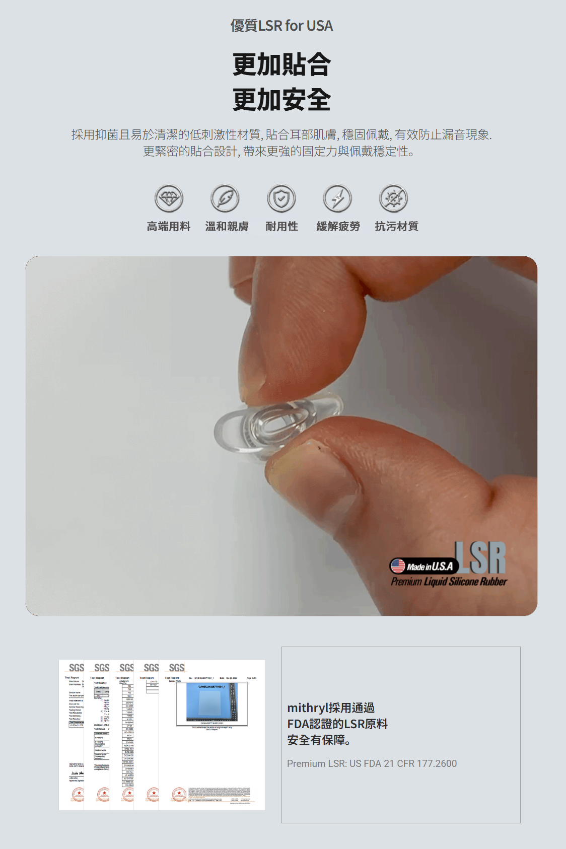 內置外科級不銹鋼導管的雙材質耳塞套mithryl
