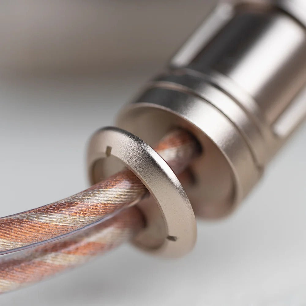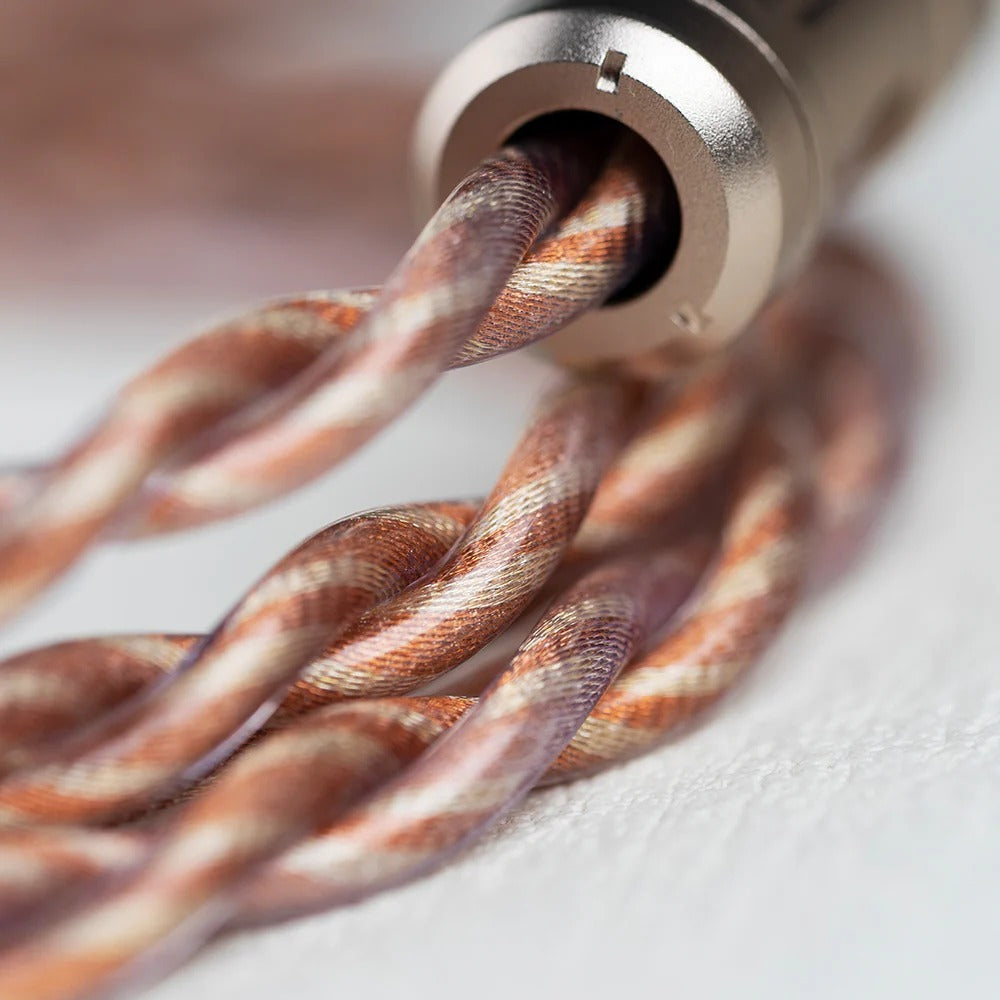 Fusion 1 的核心,是 EFFECT AUDIO 有史以來最複雜精細的結構——我們獨家研發的 Tri-Strata Layering™(TSL)三層分佈幾何技術。三層經過精準設計的結構,將 UP-OCC 鍍金銀、UP-OCC 純銀,以及近半打頂級銅材變體(包括改良後的人體工學單芯實心銅置於中心)完美結合。在這三層之中,40 組不同尺寸的核心線束經過精心排列,以最大化導電效率、維持訊號完整性,並確保全頻段音色的統一一致。
