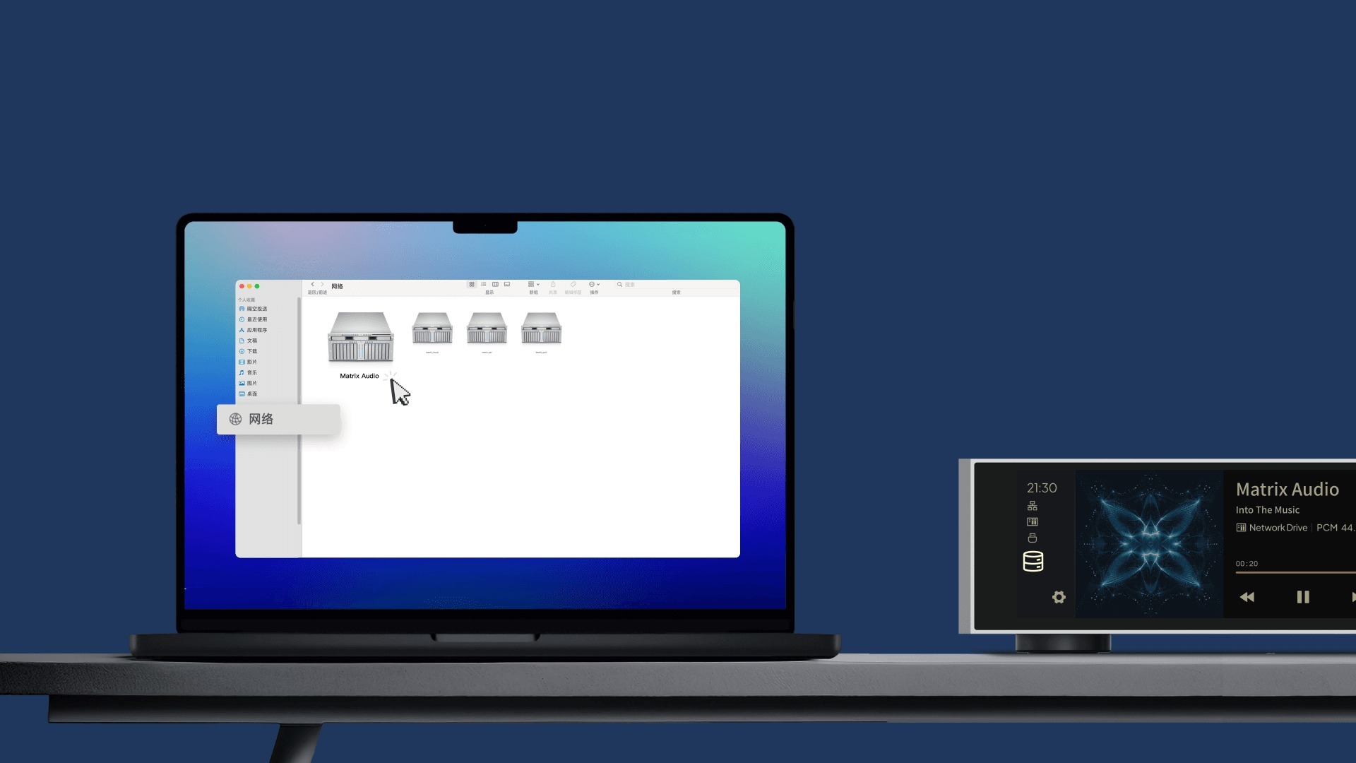 透過SMB 協議,區域網路內電腦可便捷存取本機存儲,輕鬆為音樂庫添磚加瓦。同時,本機還能化身NAS 音樂儲存中心,讓區域網路內其他播放器隨心所欲播放儲存的音樂。
