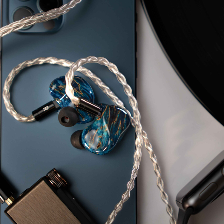 Available in a vibrant array of colors, the in-ear monitors in the Artisan collection are your canvas for self-expression. Artisan No. 2 is made by stabilizing the curly birch with an enchanting mix of deep and electric purple hues, retaining golden accents from the natural wood color.